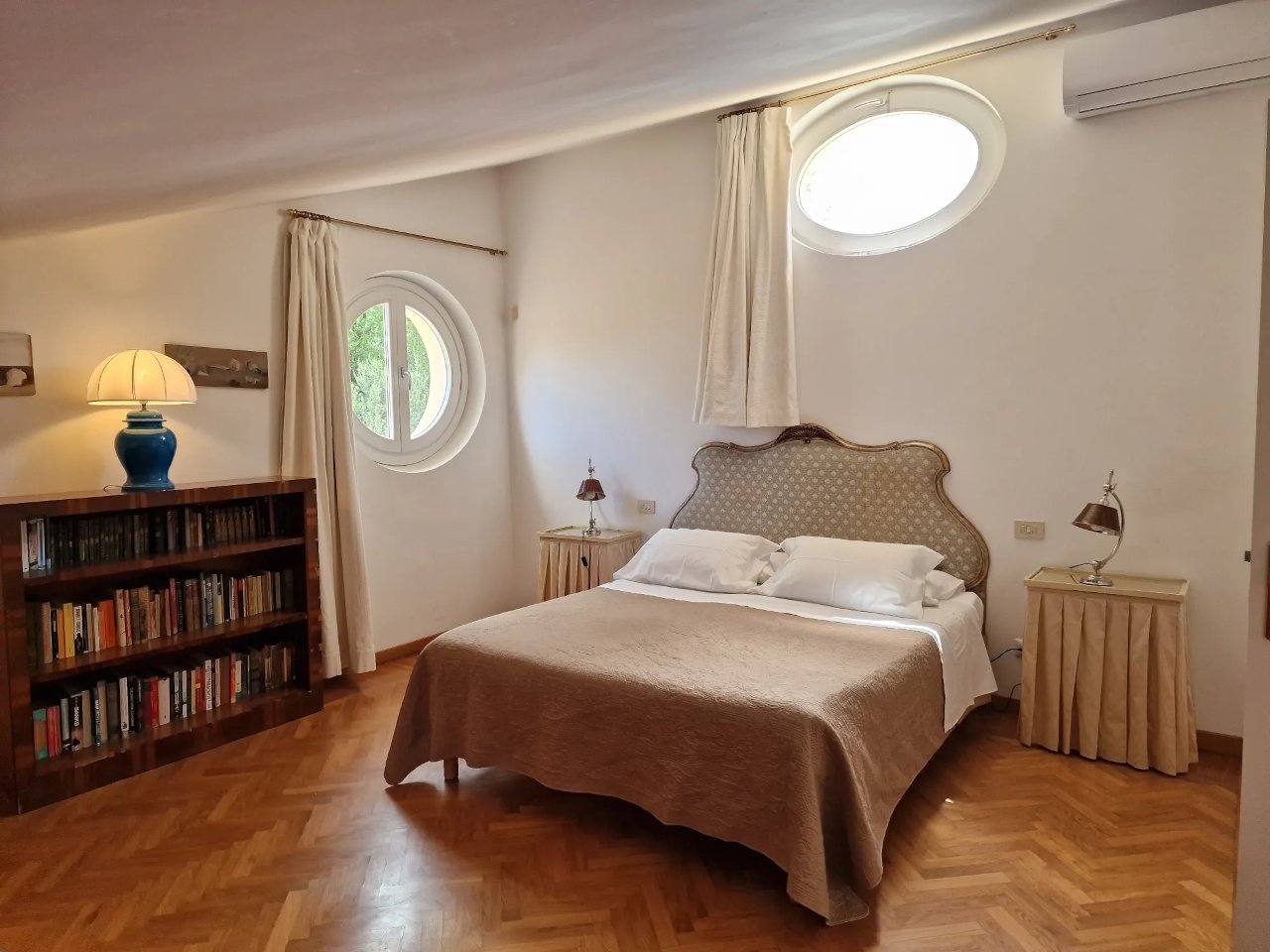 La zona notte della Villa è composta da diverse camere eleganti e confortevoli. Al piano principale troviamo una suite con camera matrimoniale, salottino, bagno privato con vasca idromassaggio e guardaroba, oltre a una camera matrimoniale con bagno privato e guardaroba. A completare la zona notte, ci sono una camera matrimoniale e una camera tripla per bambini, con un bagno in comune. Infine, la mansarda, situata al piano superiore, ospita una camera matrimoniale, un salottino e un bagno con doccia, offrendo uno spazio intimo e riservato.